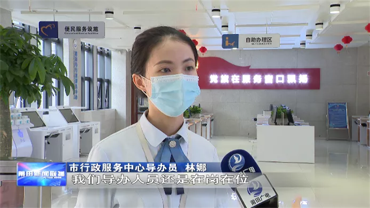 从9月10日发生疫情以来,莆田市市场监管局商事登记窗口一直坚持在岗在位,服务不断档,坚持使用掌上办、网上办、自助办和邮寄办的方式,为群众提供不间断服务。包括国庆期间,我们也是坚持在岗在位。