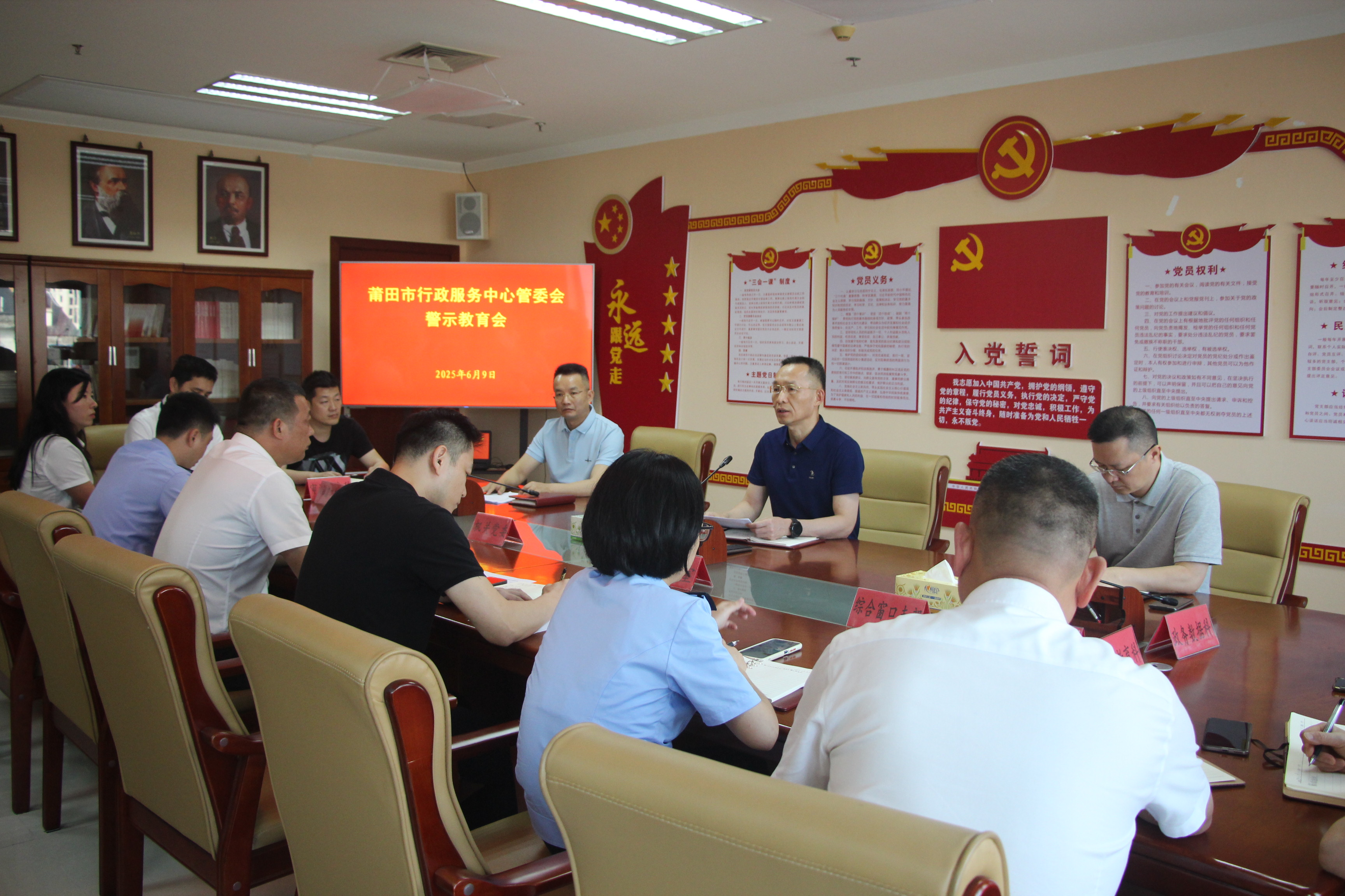 6月9日,市行政服务中心管委会召开警示教育会,深入学习贯彻习近平总书记关于加强党的作风建设的重要论述和重要指示批示精神,认真学习《整治形式主义为基层减负若干规定》《党政机关厉行节约反对浪费条例》,传达学习中央、省市相关通知通报以及全省、全市警示教育会精神,强化以案说德、以案说纪、以案说法、以案说责,教育引导党员干部以优良作风保障中心高质量发展。中心管委会党组书记、主任卢国平主持并讲话。